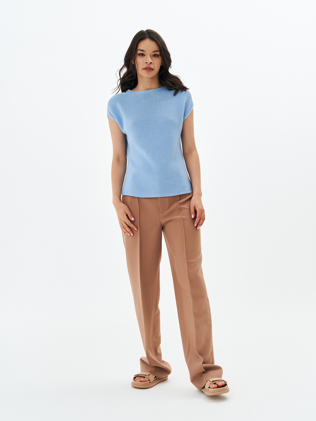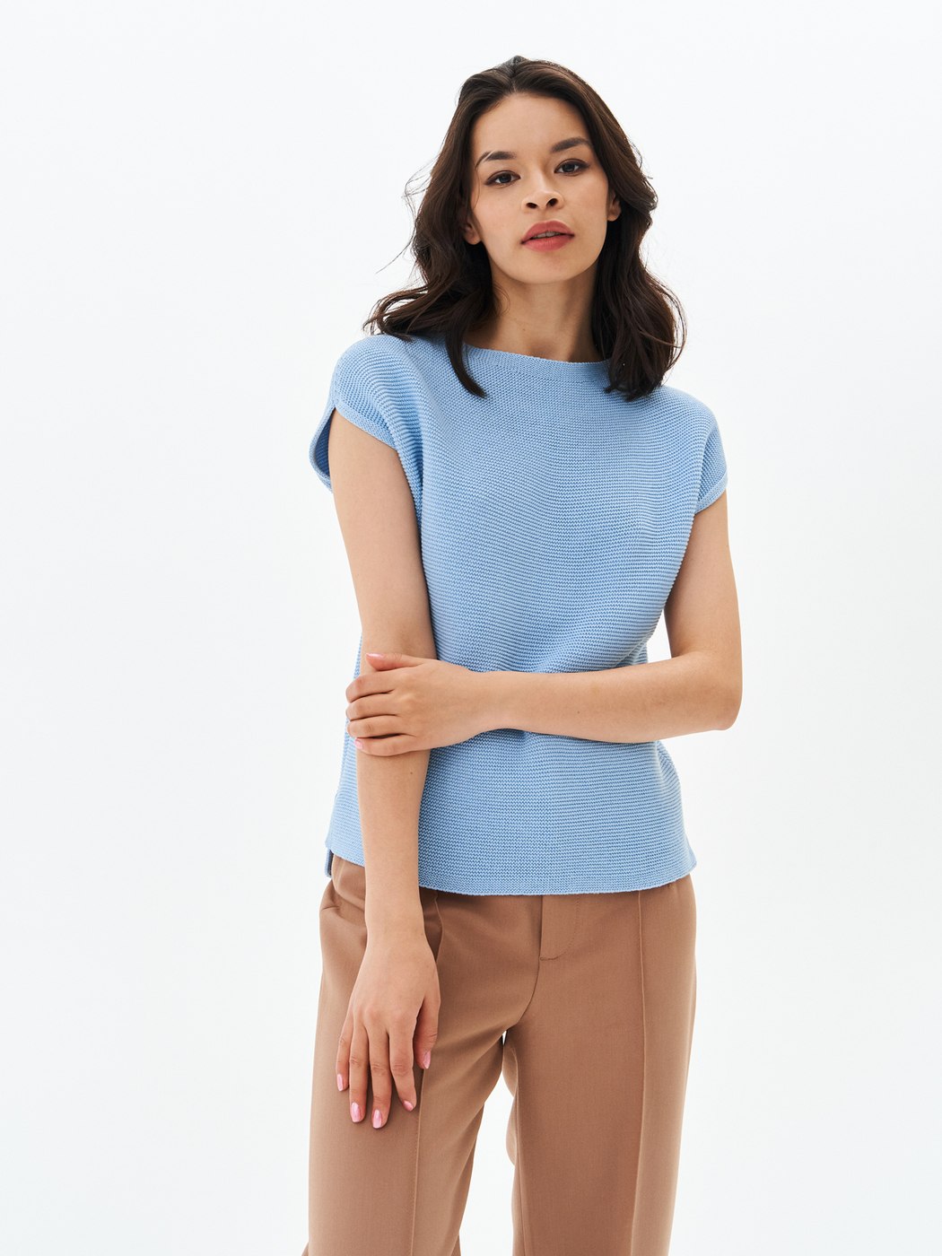 Универсальная модель с декоративным вырезом на спине в виде капли. Основание выреза украшено стеклянной стразой. Рукав спущенный, короткий. По бокам разрезы. Джемпер, в котором есть всё, чтобы чувствовать себя удобно, красиво и индивидуально!