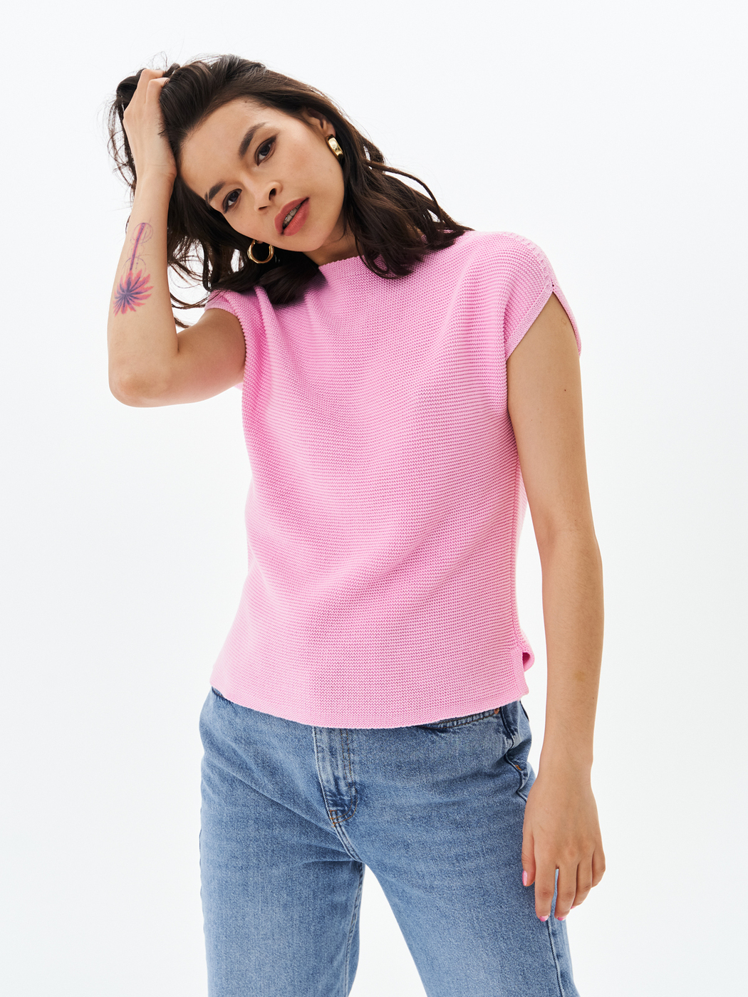 Универсальная модель с декоративным вырезом на спине в виде капли. Основание выреза украшено стеклянной стразой. Рукав спущенный, короткий. По бокам разрезы. Джемпер, в котором есть всё, чтобы чувствовать себя удобно, красиво и индивидуально!