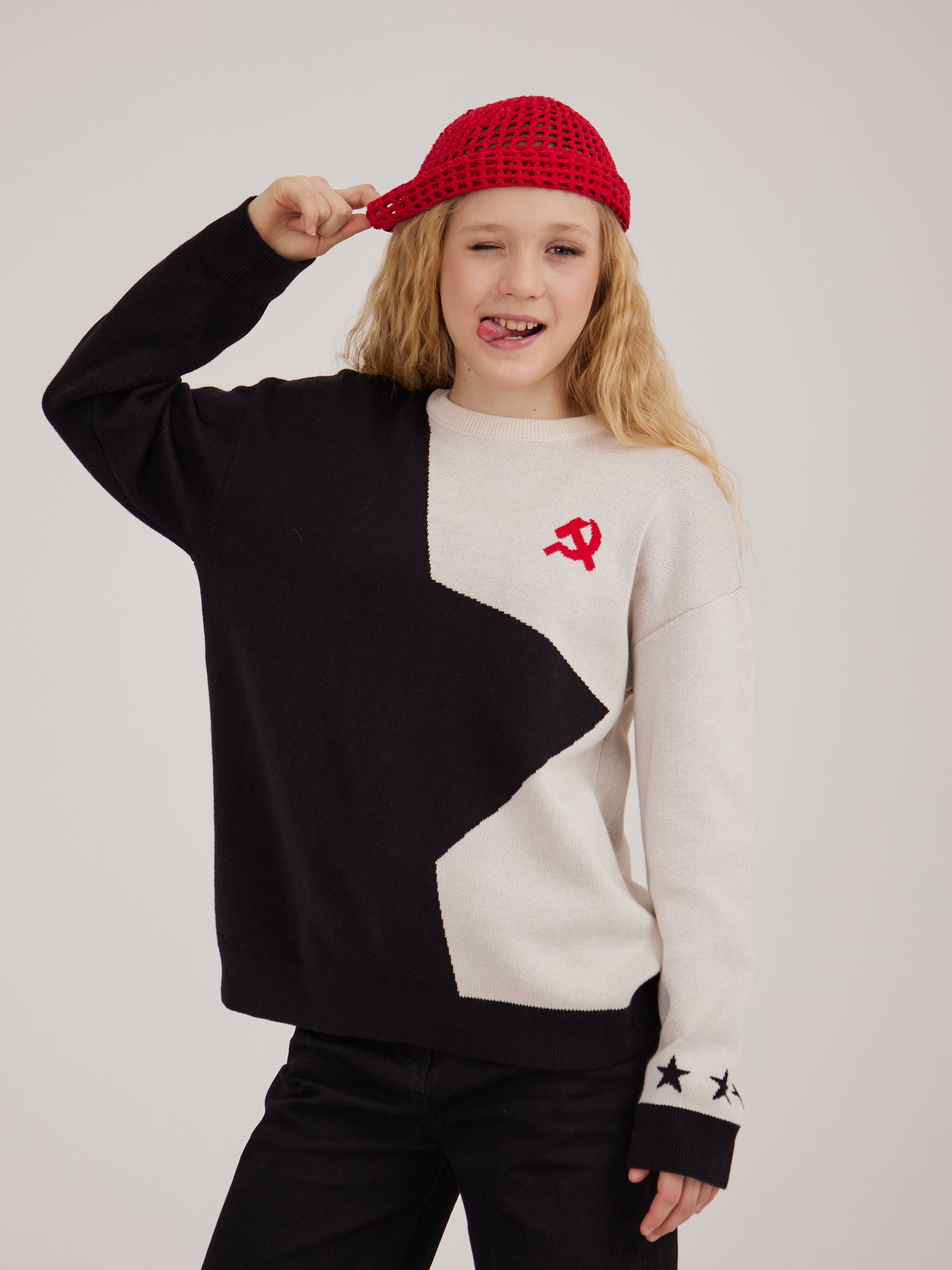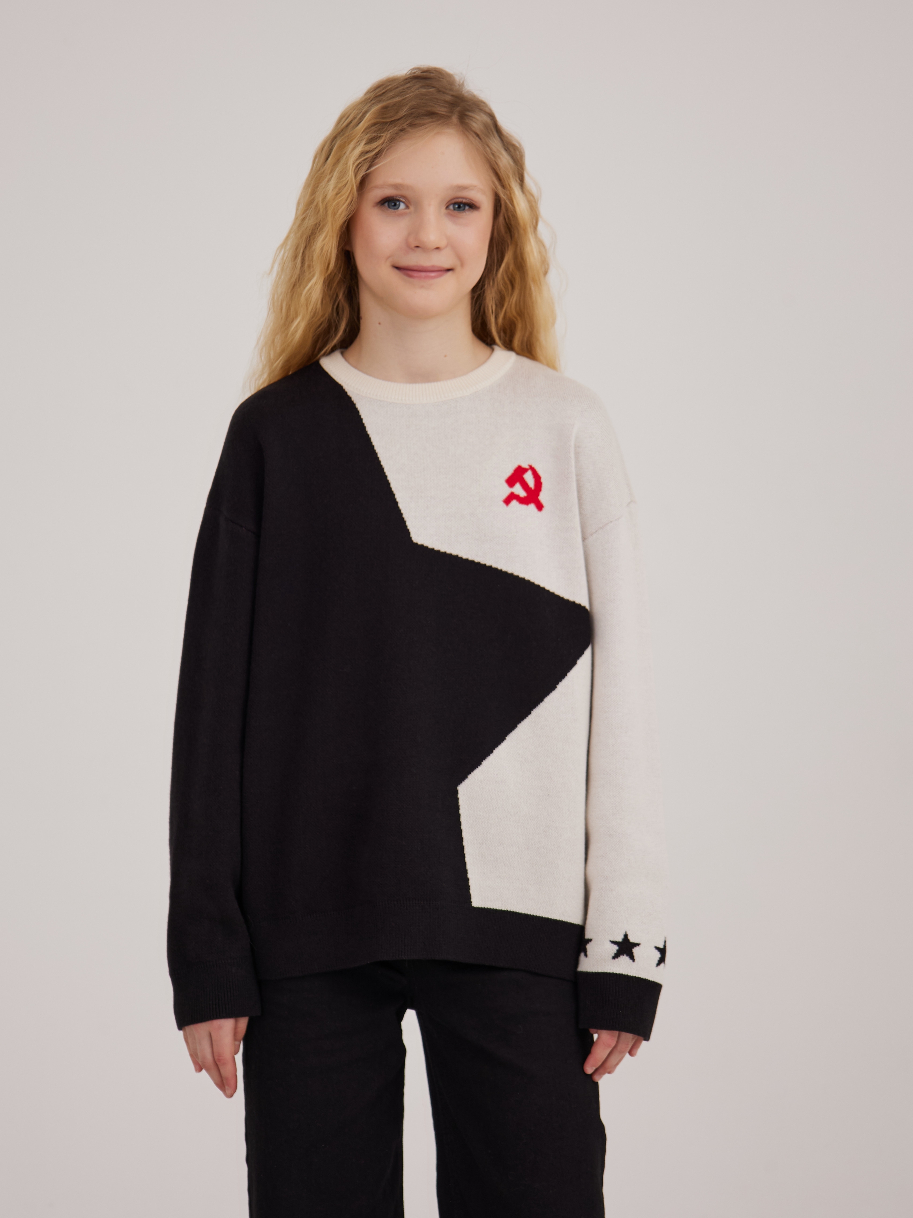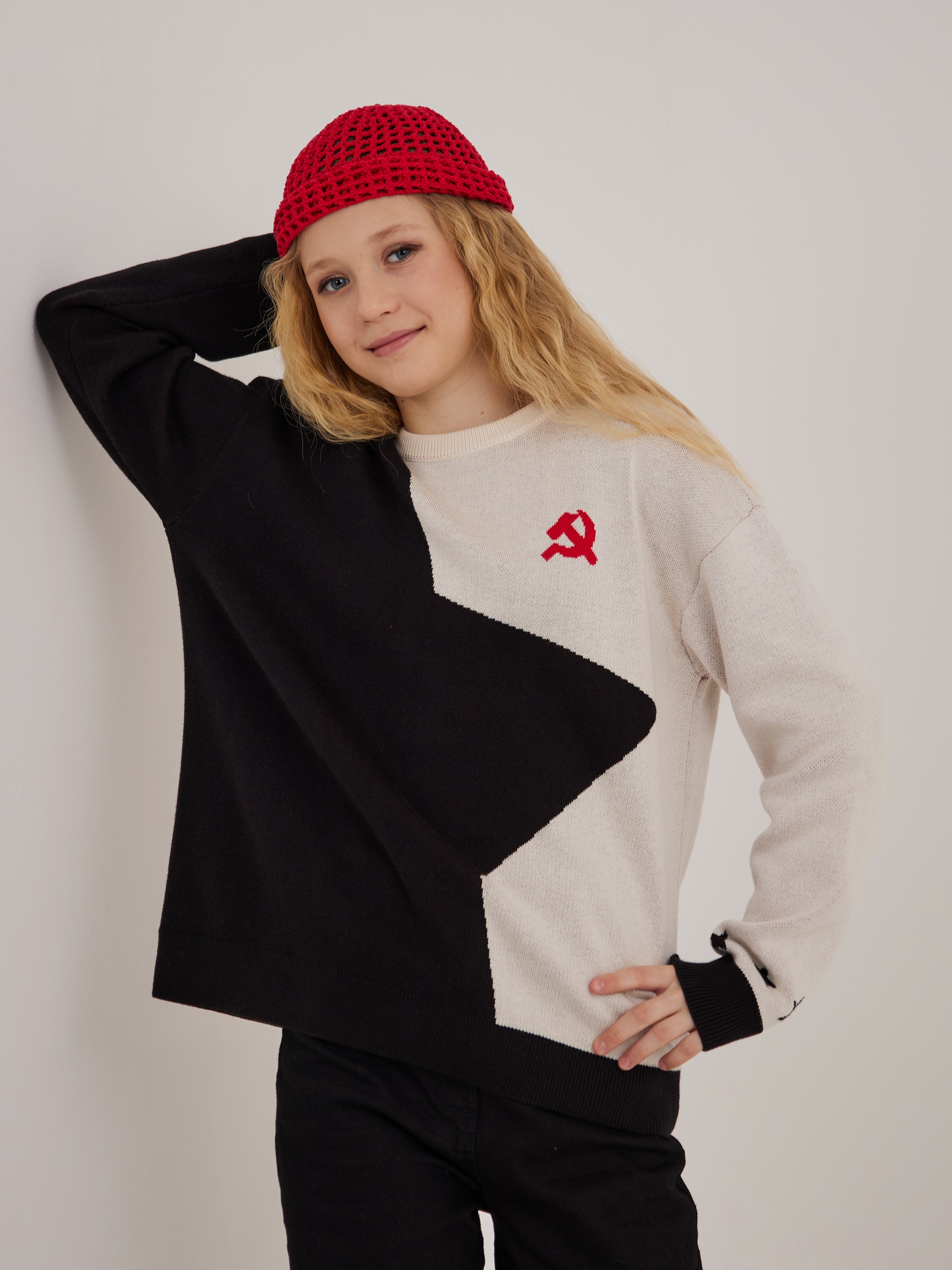 Джемпер создан в соавторстве с дочерью-подростком на собственном производстве, где каждая модель проходит путь от идеи до готового изделия внутри одной команды.