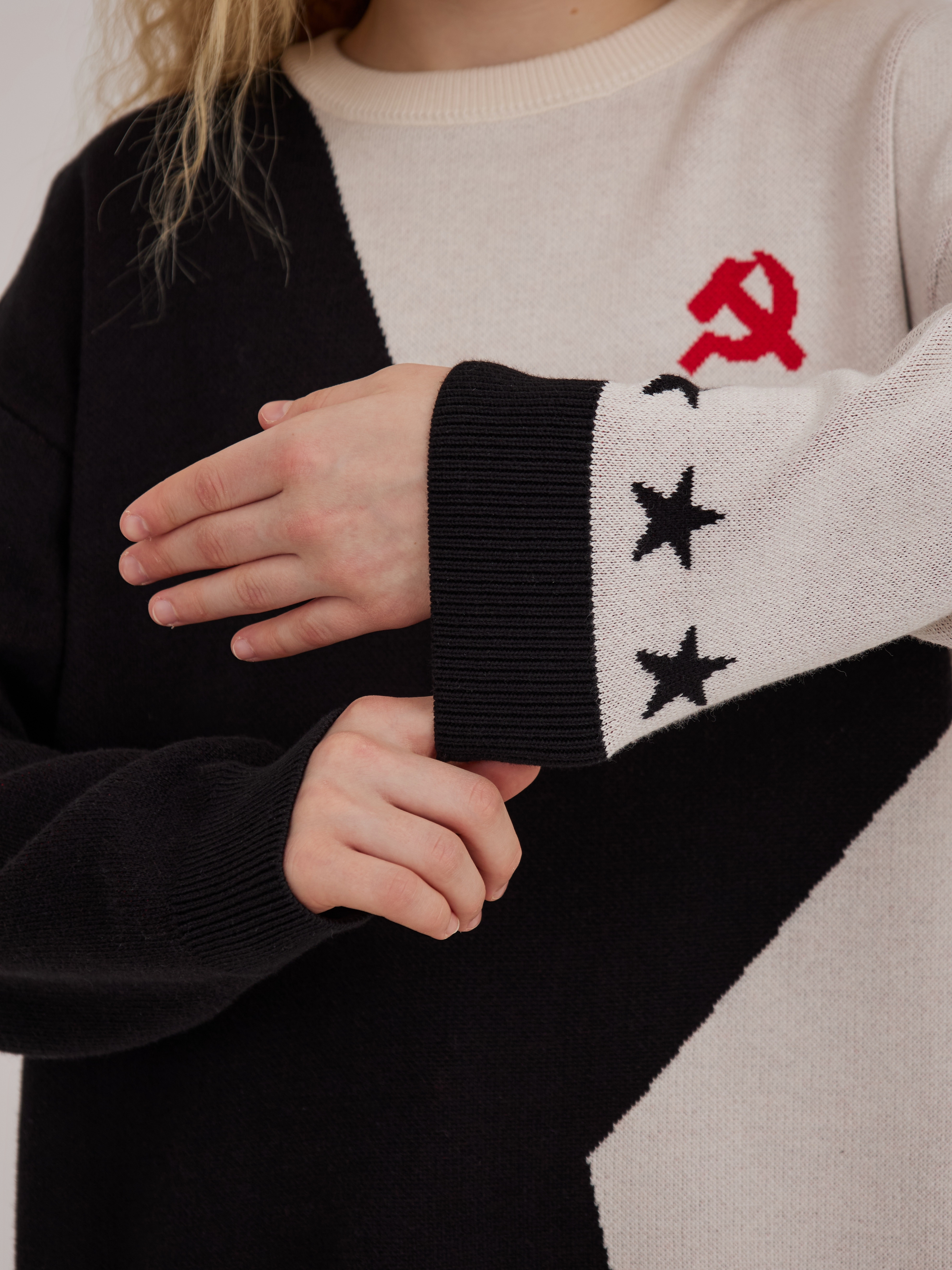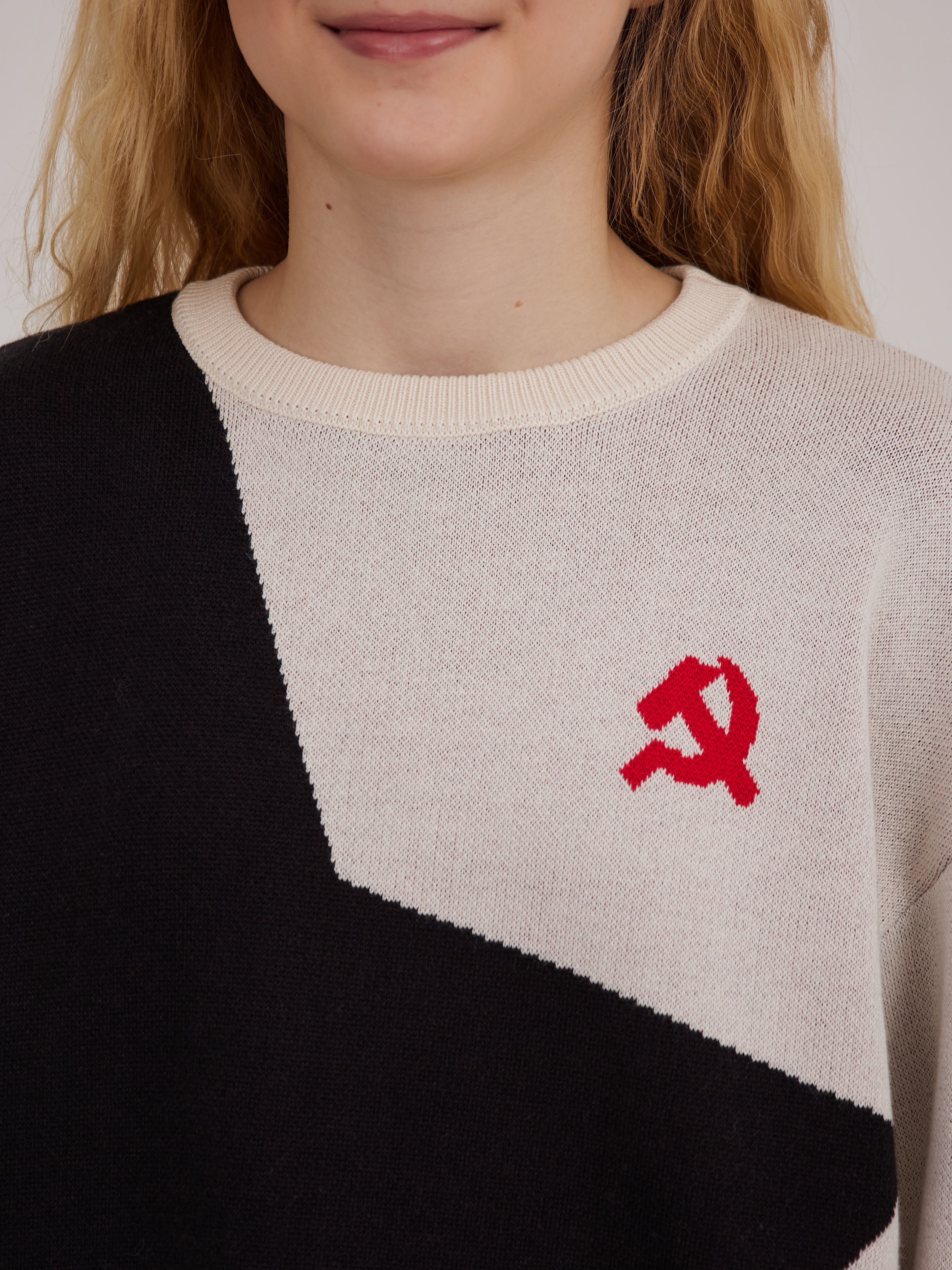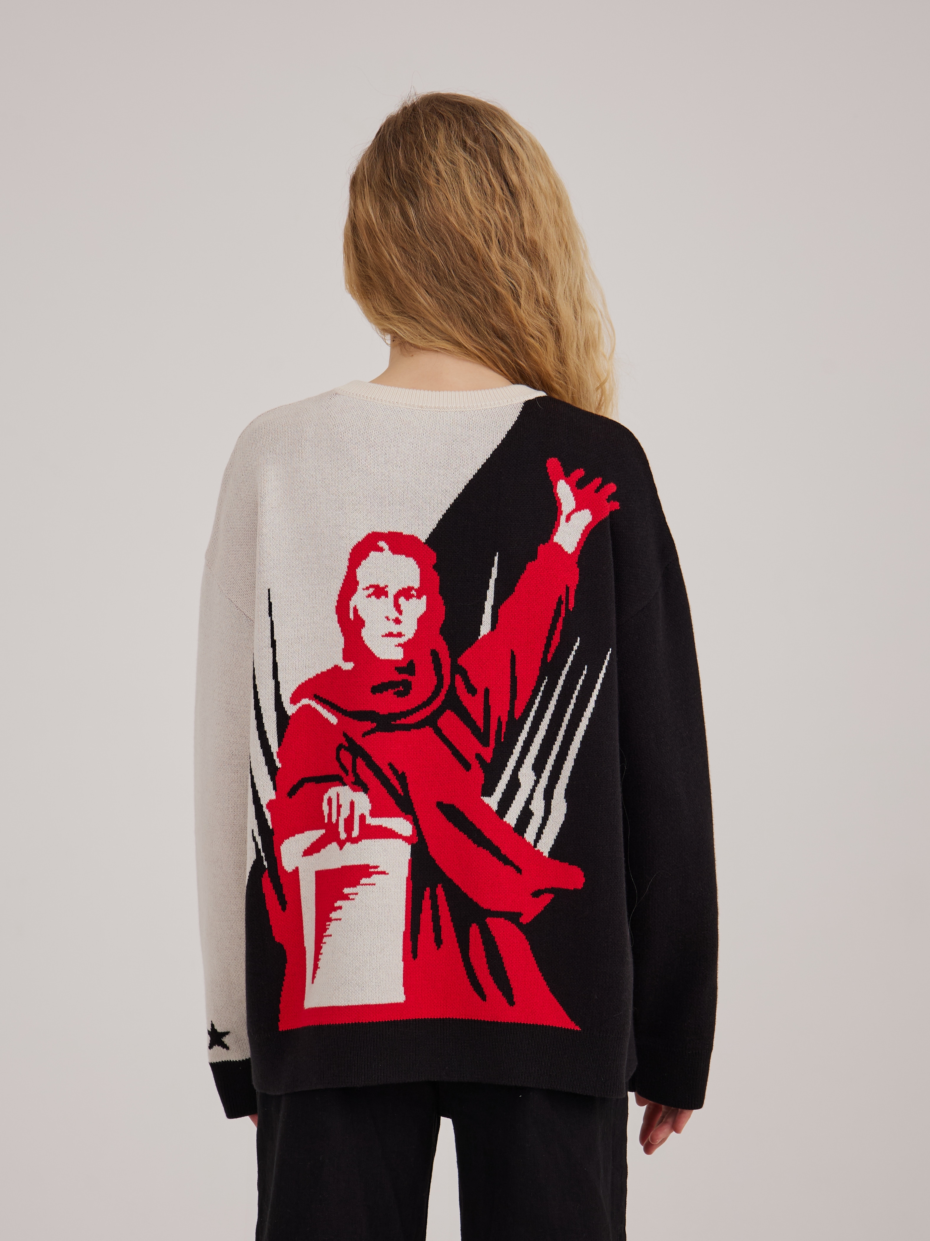 Джемпер Родина-мать - это современное прочтение стилистики советского авангарда.
